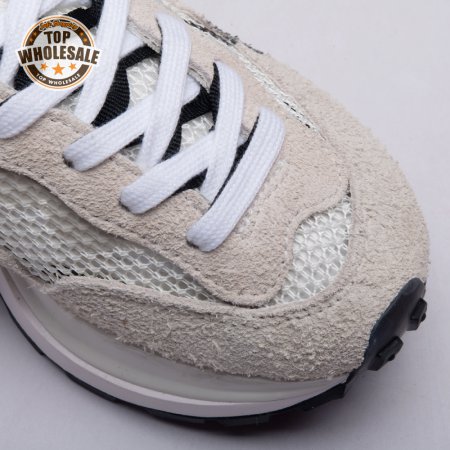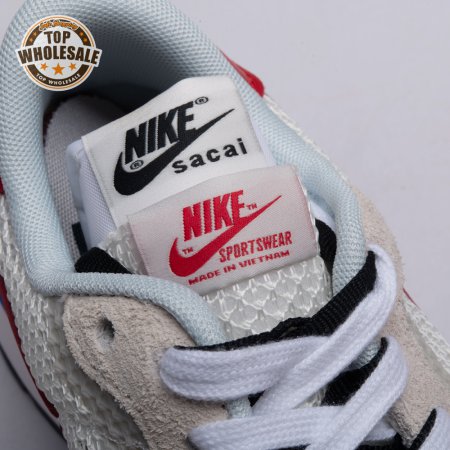 Made in partnership with the progressive Japanese fashion label, the Sacai x Nike VaporWaffle "Black White" repeats many of the design tropes introduced on the brands" LDV Waffle collaboration from 2019. They include doubled tongues, doubled Swooshes and a stacked midsole, updated here with split construction at the heel. Up top, open off-white mesh is fortified with tonal suede overlays and a red leather heel tab marked with dual Nike and Sacai branding.