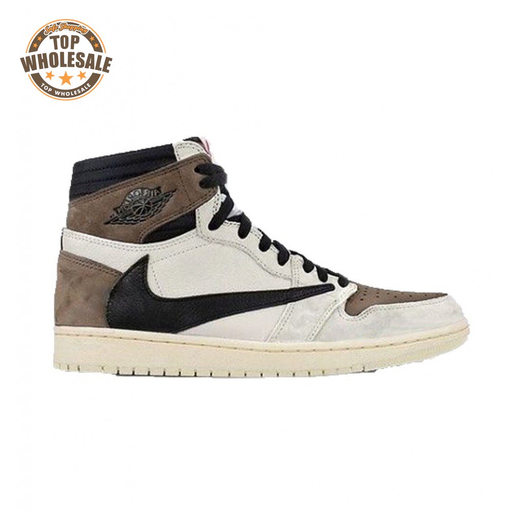 Travis Scott and Jordan Brand collaborate on an Air Jordan 1 Low, taking similar design cues from the high-top version. An oversized backward facing Swoosh is featured prominently on the lateral side of the shoe, while a regular Swoosh graces the medial side. Black and Dark Mocha nubuck dominate the upper, with a few pops of University Red adding a nice contrast. Travis Scott details are subtly placed on the shoe, with the "Cactus Jack" logo appearing on the tongue, medial side panel and sockliner. The back heel tabs feature intricately stitched logos, with the Air Jordan Wings on the right shoe and Scott"s crudely drawn face on the left shoe.