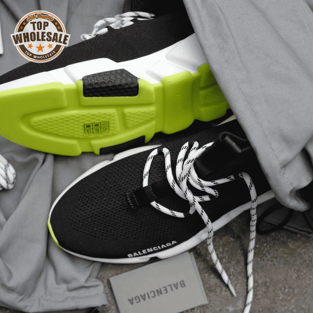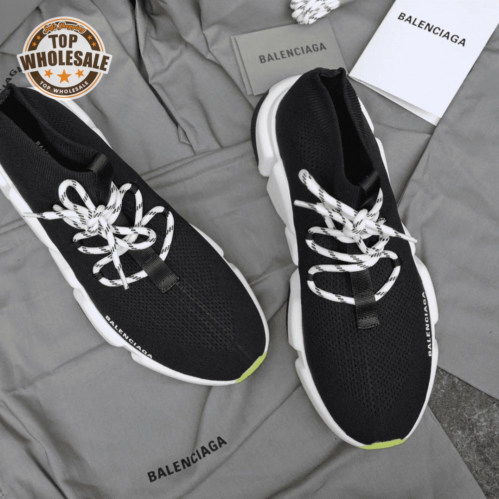 BALENCIAGA SPEED TRAINER LACE UP BLACK WHITE - BB16