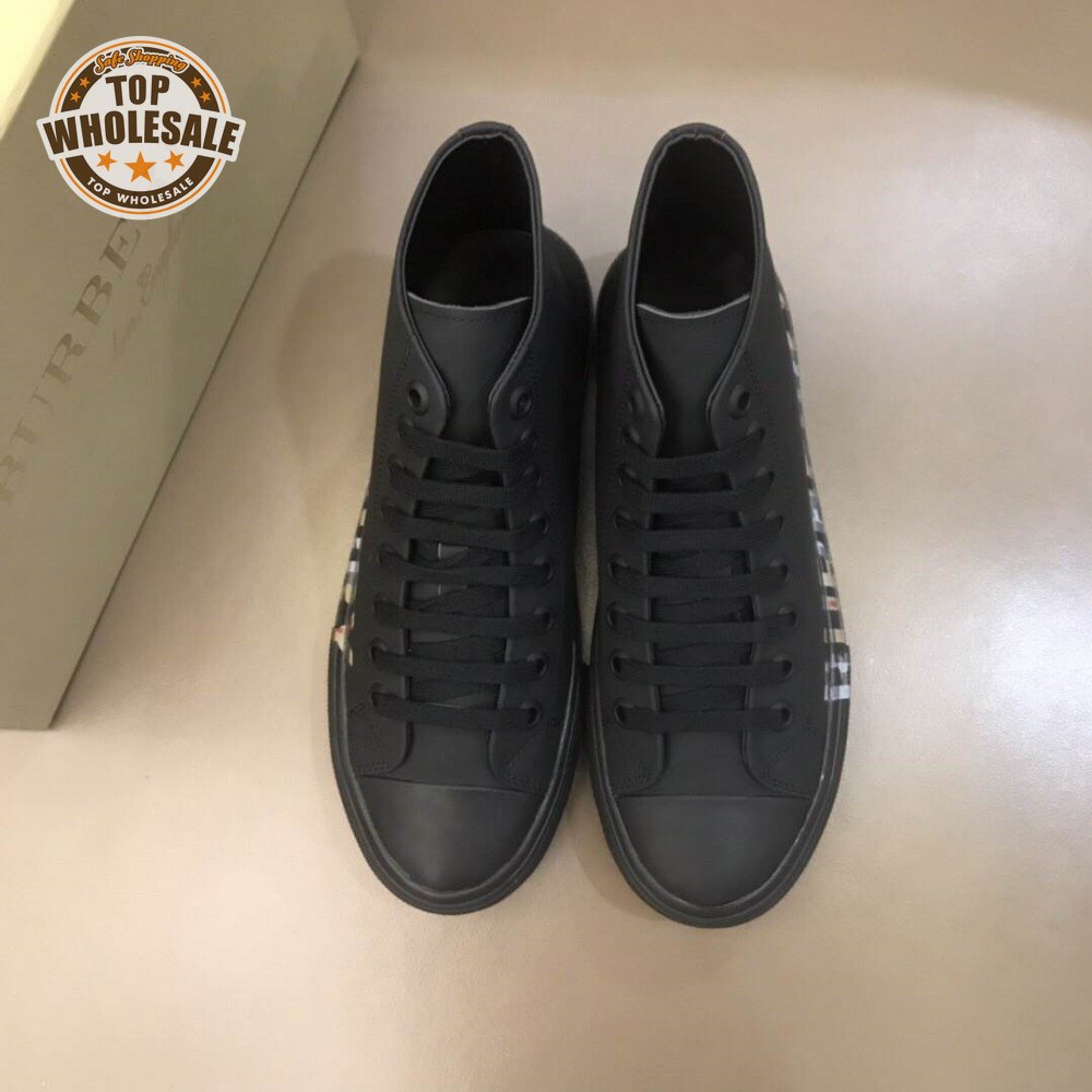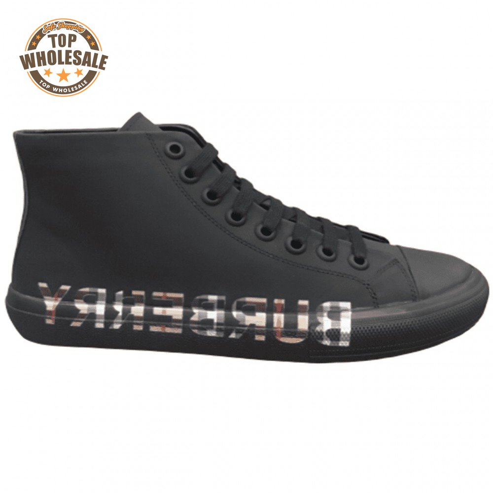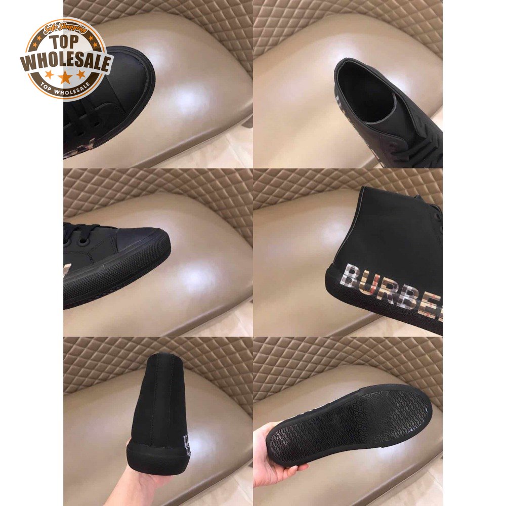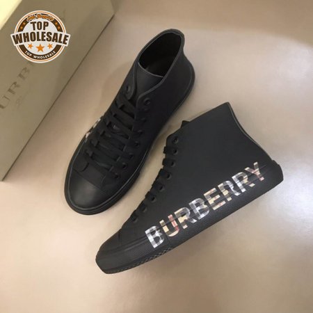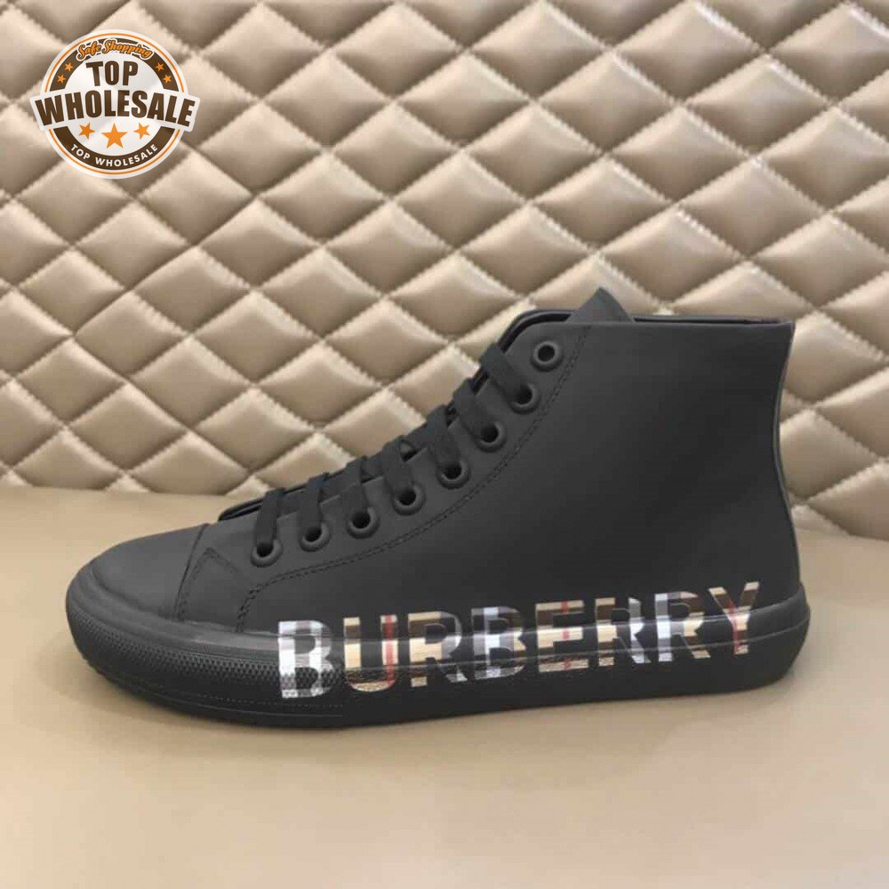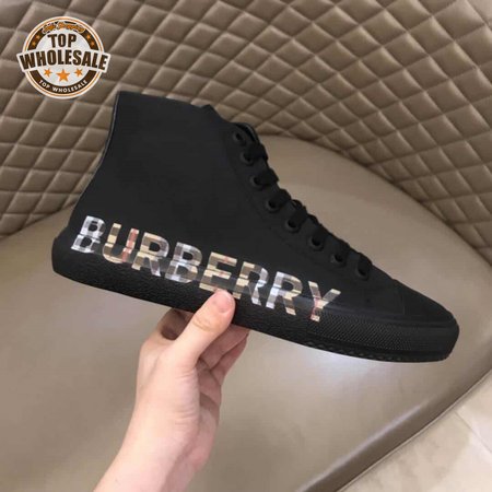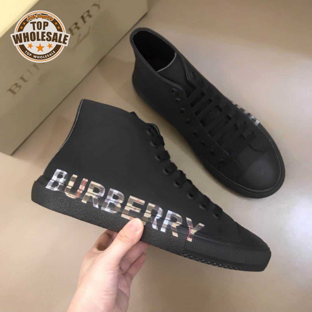BURBERRY LOGO PRINT GABARDINE HIGH-TOP SNEAKERS - BBR82