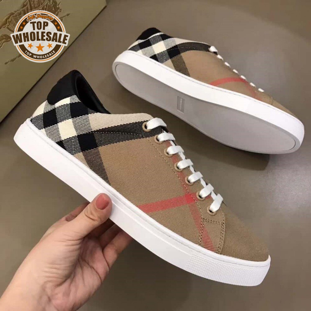 BURBERRY ALBERT HOUSE CHECK & LEATHER LOW-TOP SNEAKER - BBR3