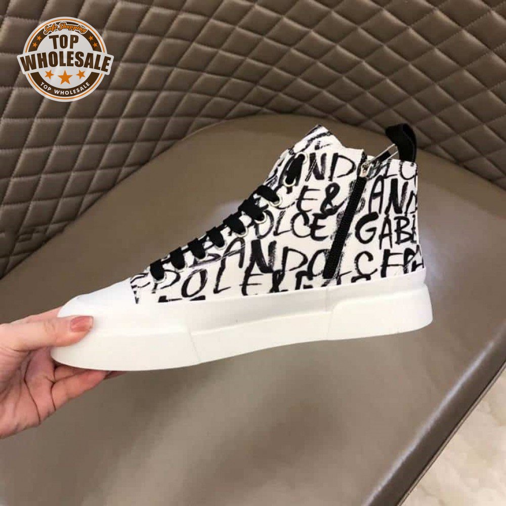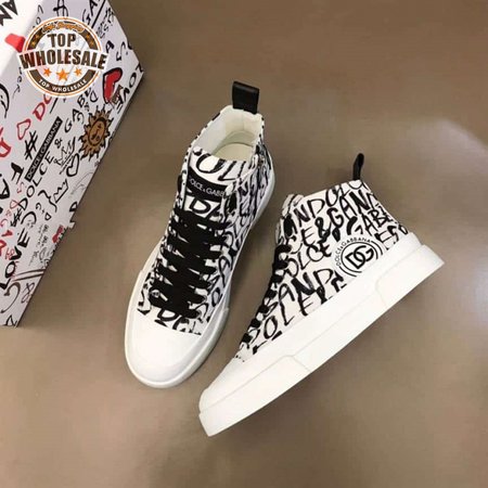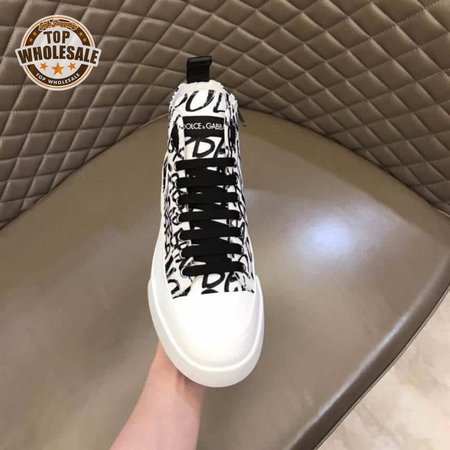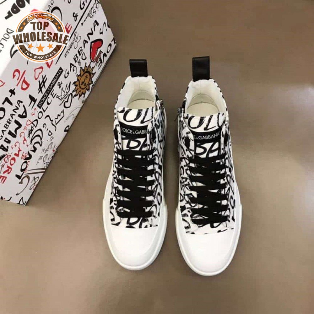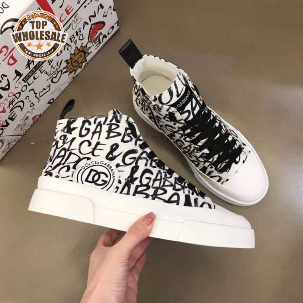DOLCE AND GABBANA CANVAS PORTOFINO LIGHT MID-TOP SNEAKERS WITH DG LOGO PRINT - DG109