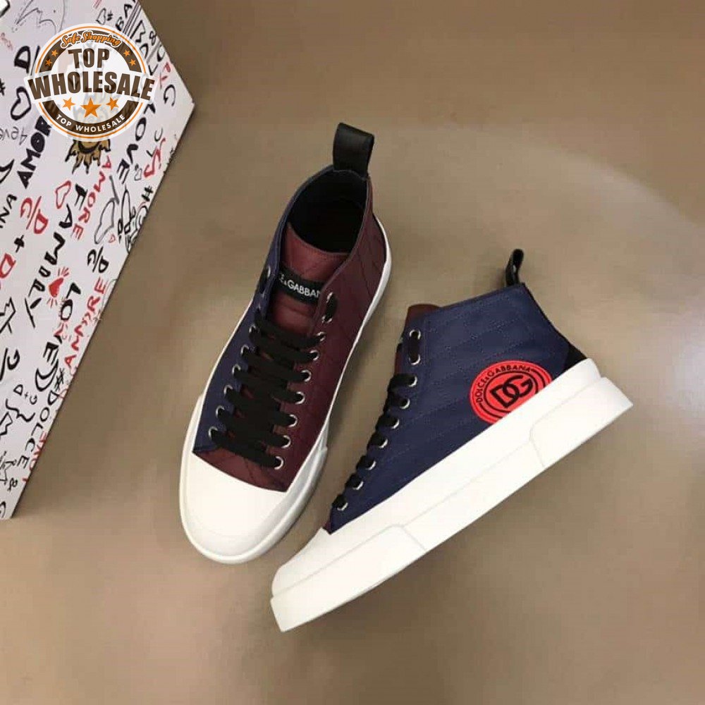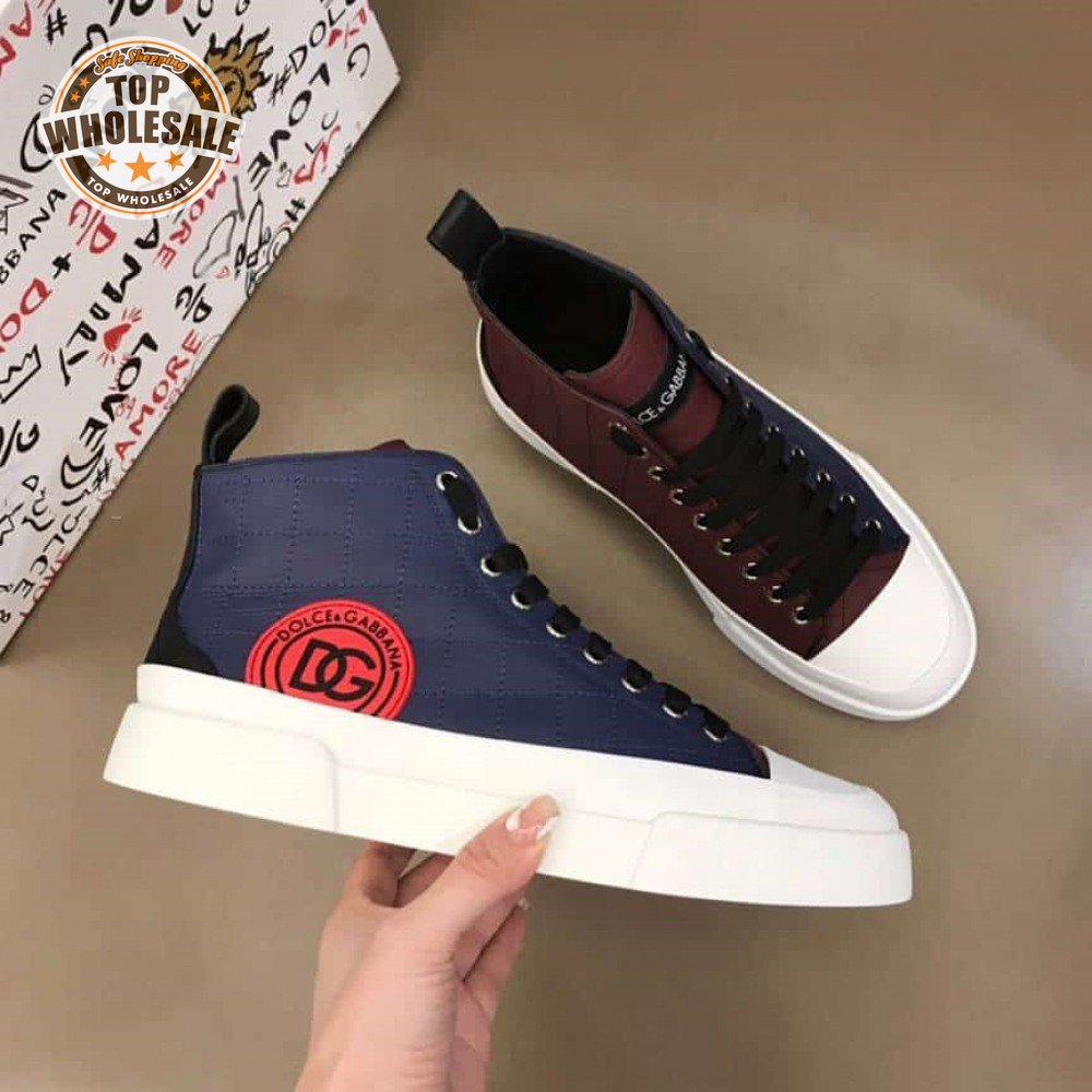 DOLCE AND GABBANA QUILTED TWO-TONE NYLON PORTOFINO LIGHT MID-TOP SNEAKERS - DG105