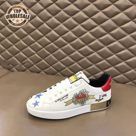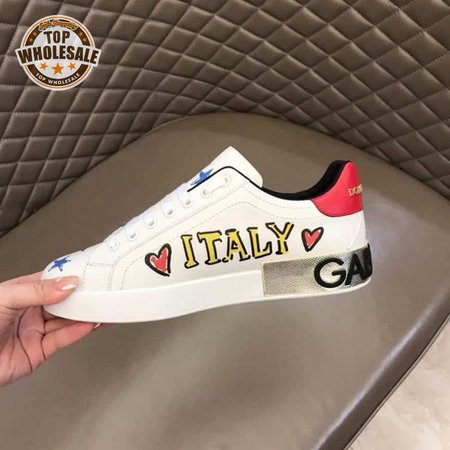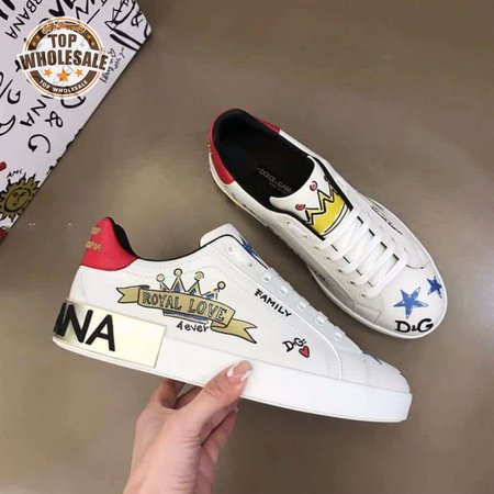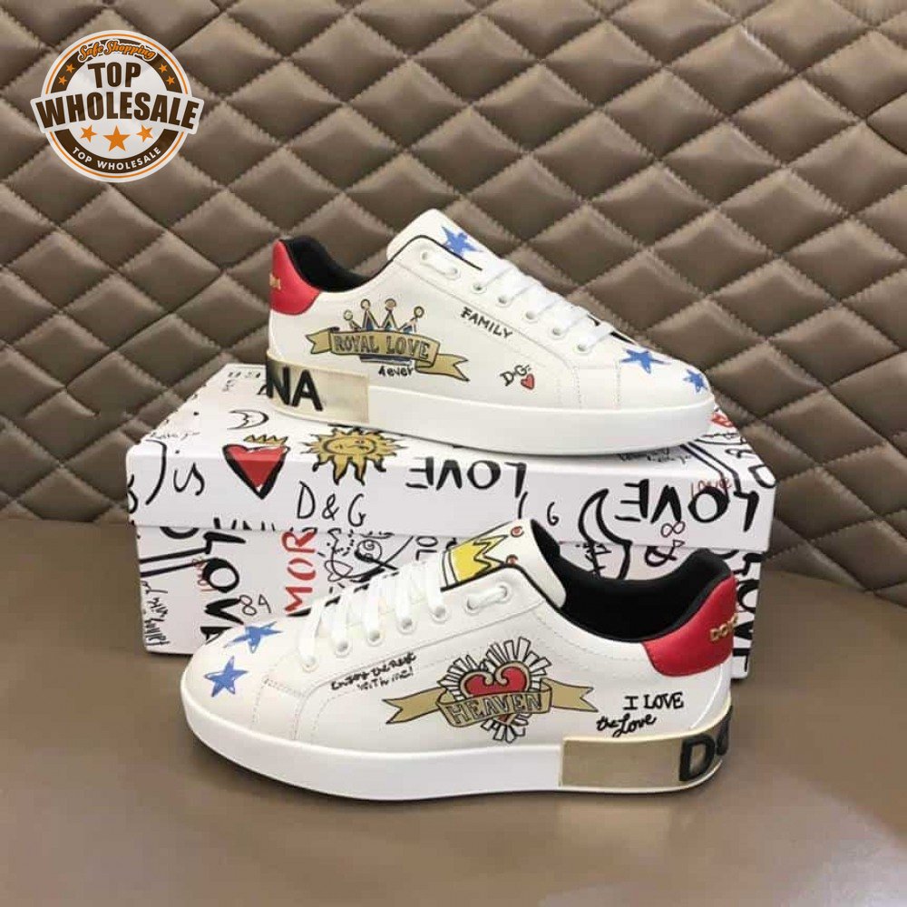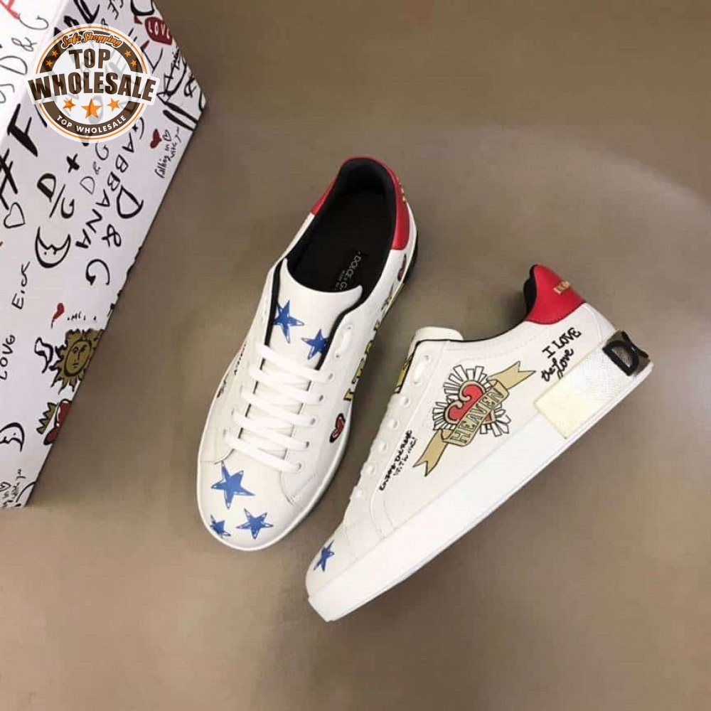 DOLCE AND GABBANA LEATHER ROYAL LOVE PRINT SNEAKERS IN WHITE - DG103