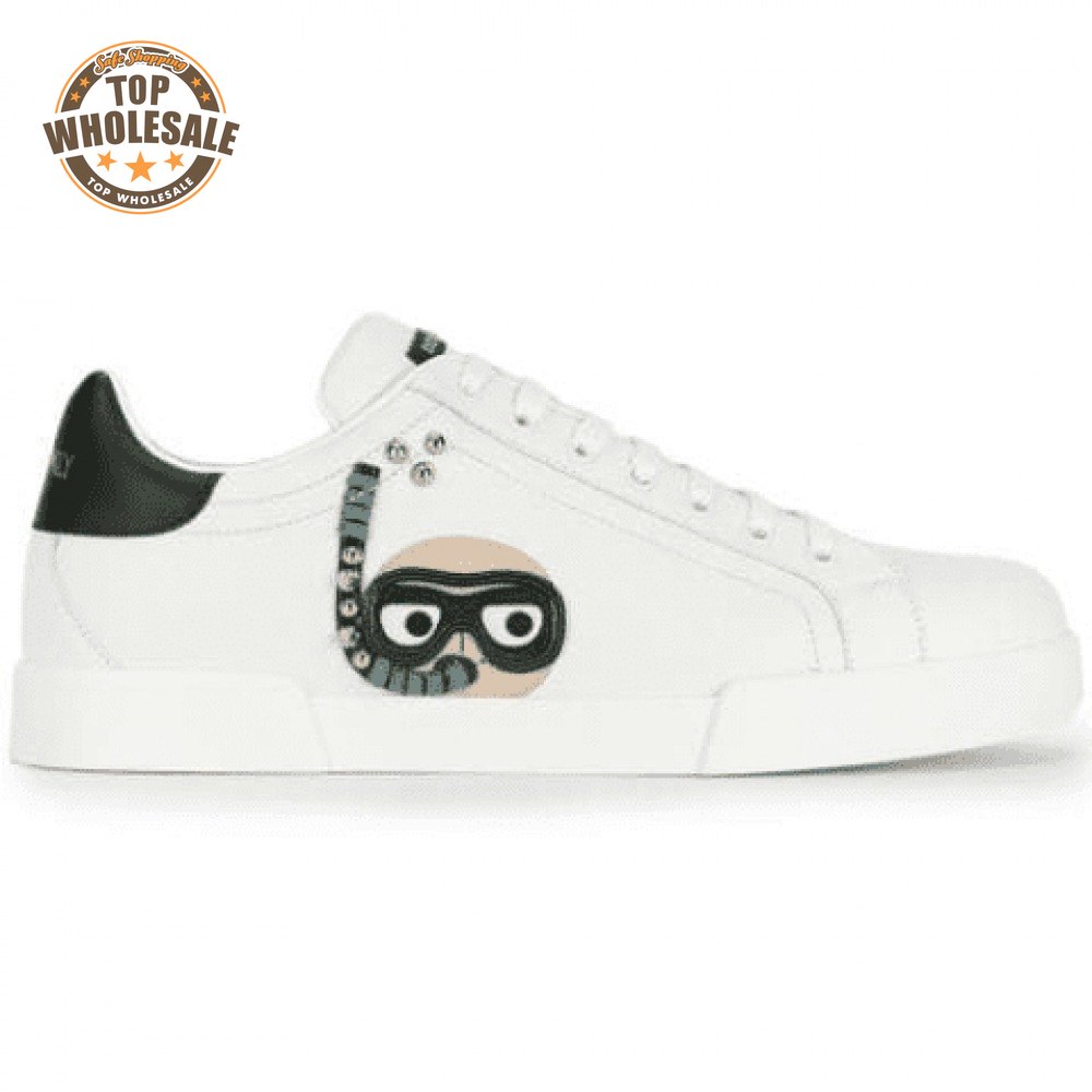 DOLCE & GABBANA CALFSKIN PORTOFINO SNEAKERS WITH PATCHES OF THE DESIGNERS - DG2