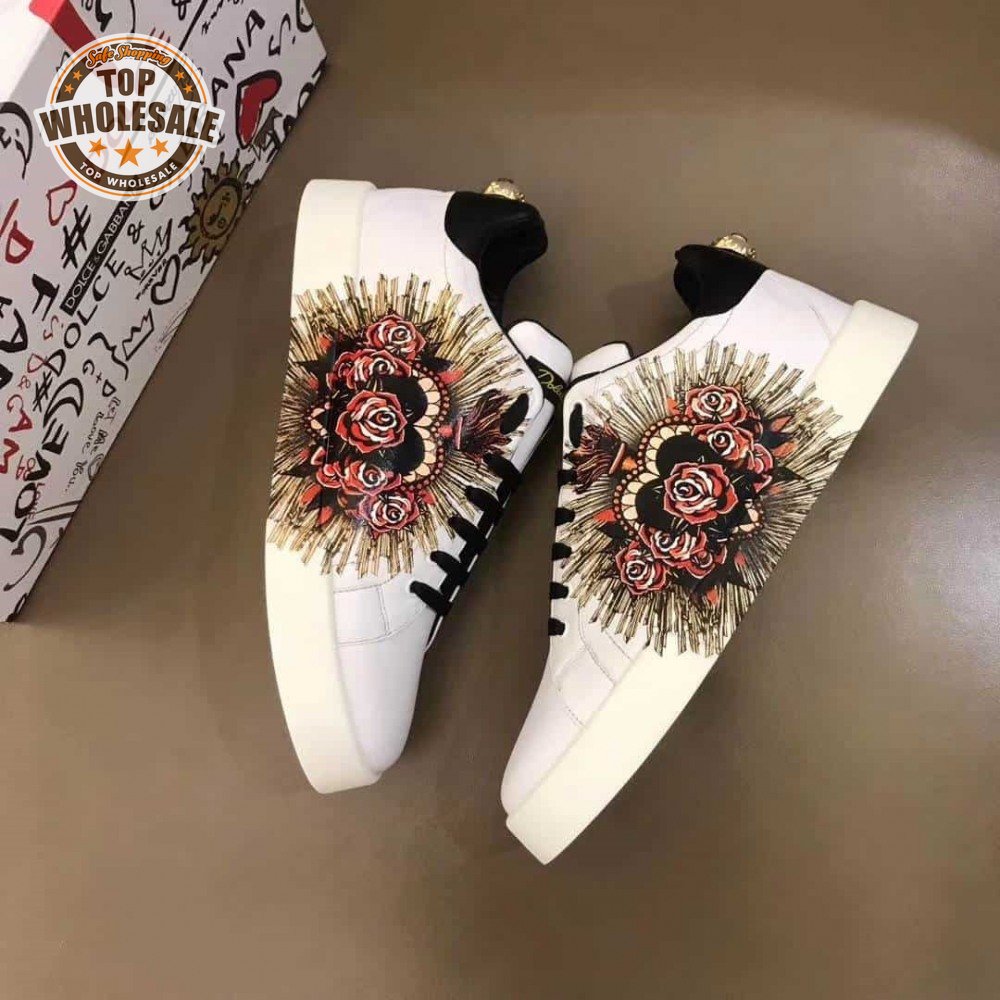 DOLCE & GABBANA PRINTED CALFSKIN PORTOFINO SNEAKERS - DG5