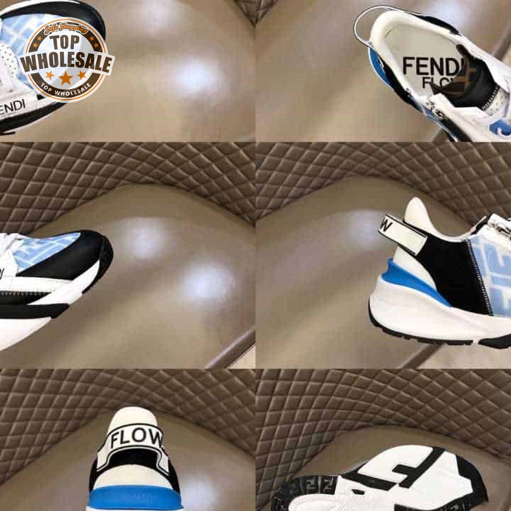 FENDI FLOW LIGHT BLUE NYLON LOW TOPS SNEAKERS - FD02