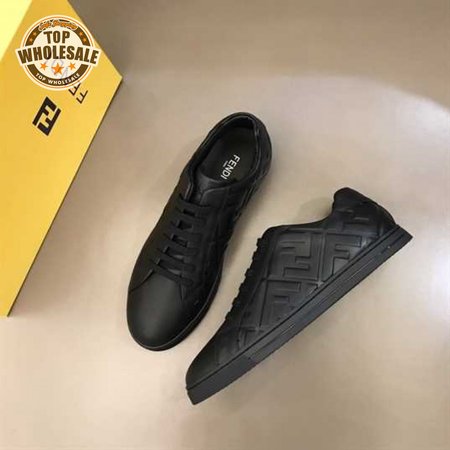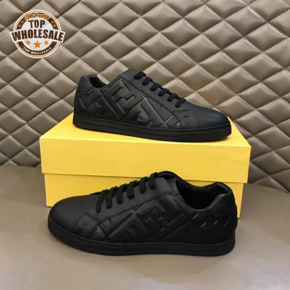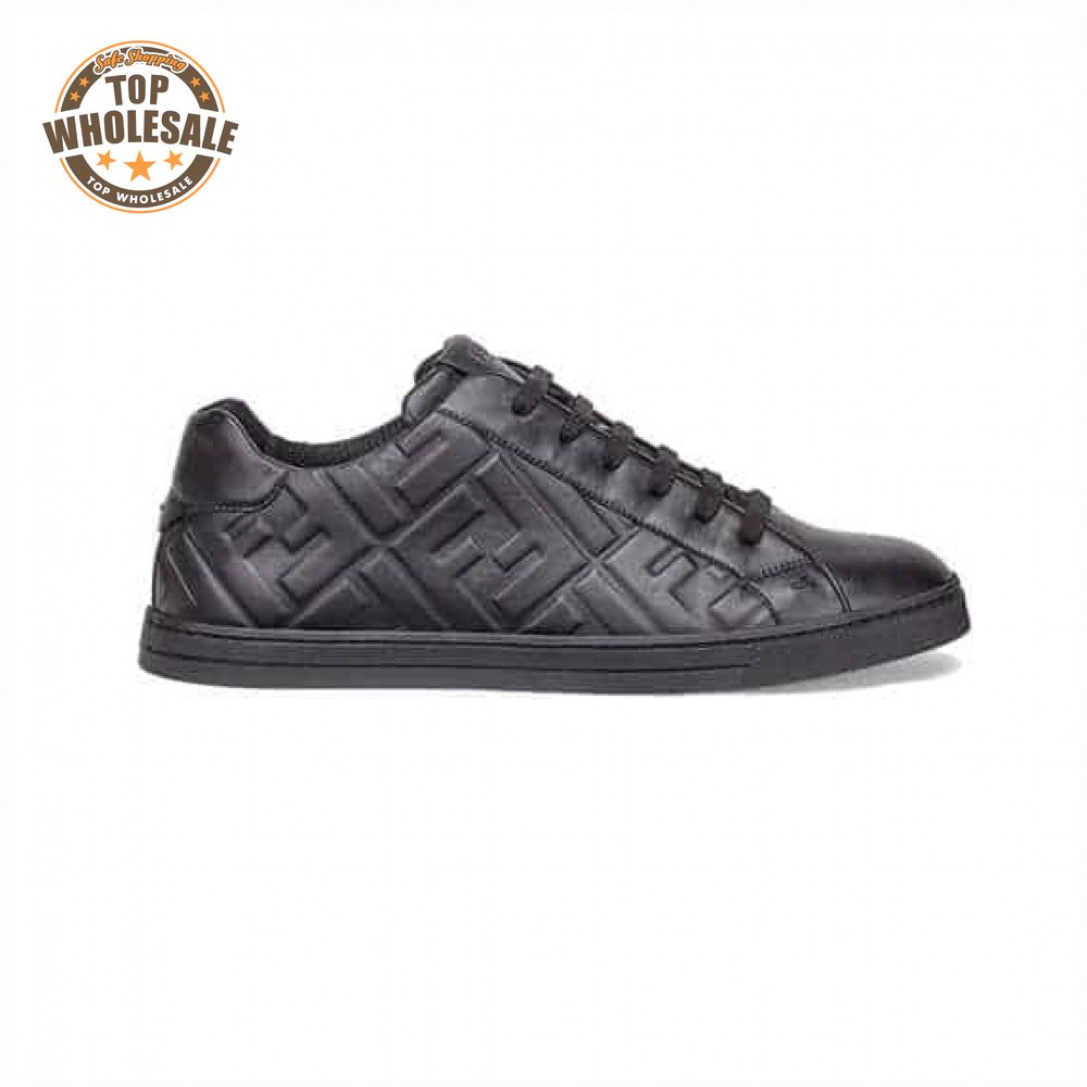 FENDI BLACK NAPPA LEATHER LOW-TOP SNEAKERS - FD04