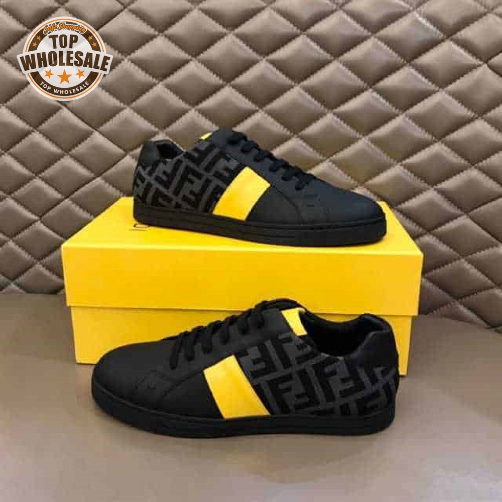 FENDI FF LOGO PRINT LOW-TOP SNEAKERS - FD18