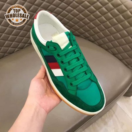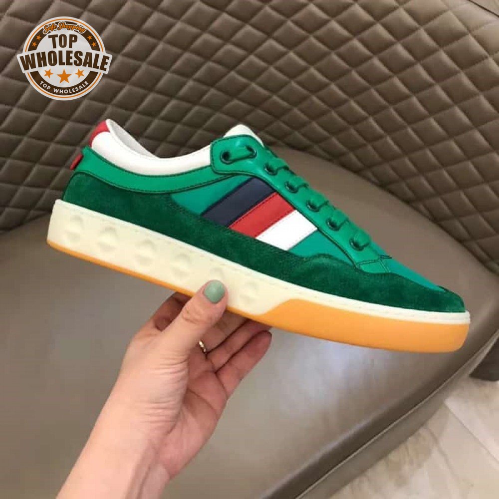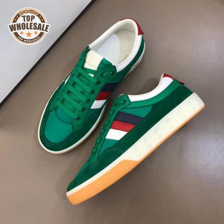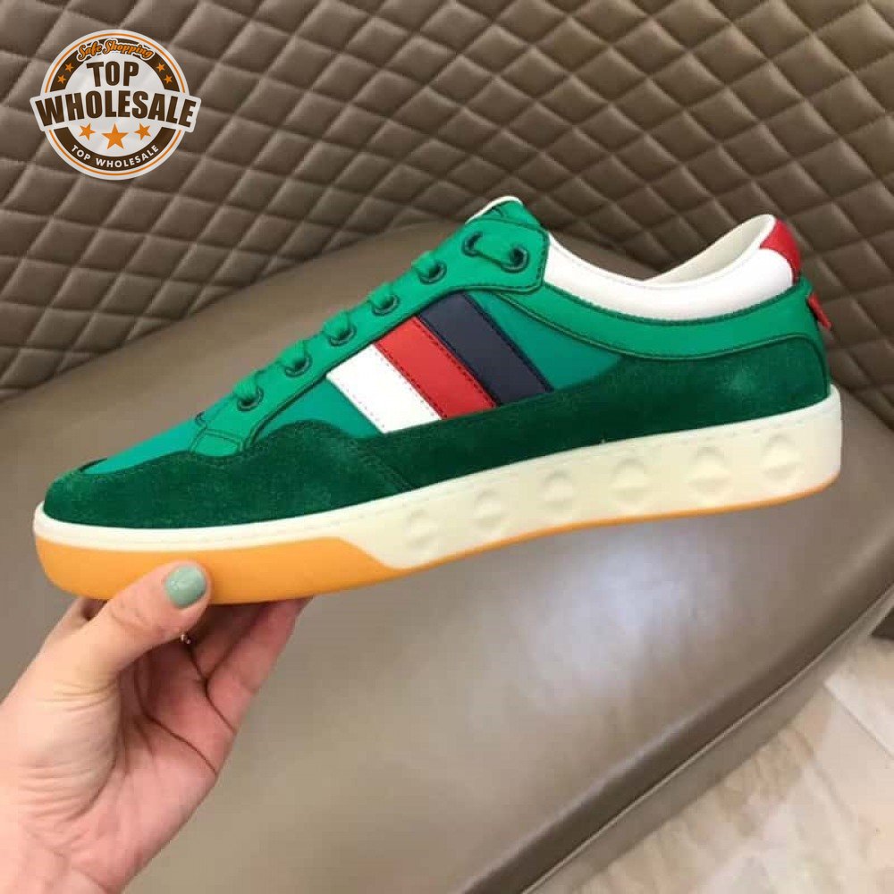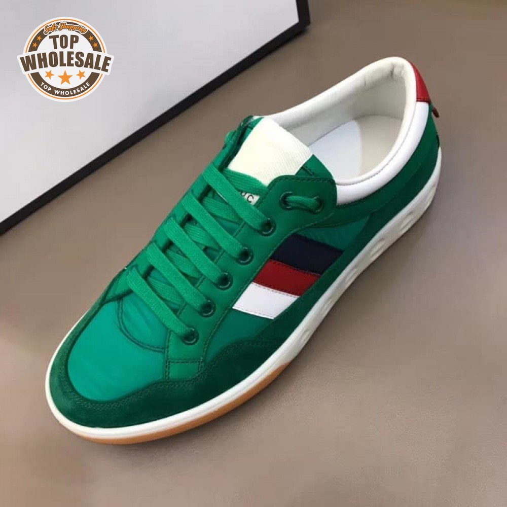 GUCCI MEN'S GREEN LEATHER AND NYLON SNEAKERS - GC61