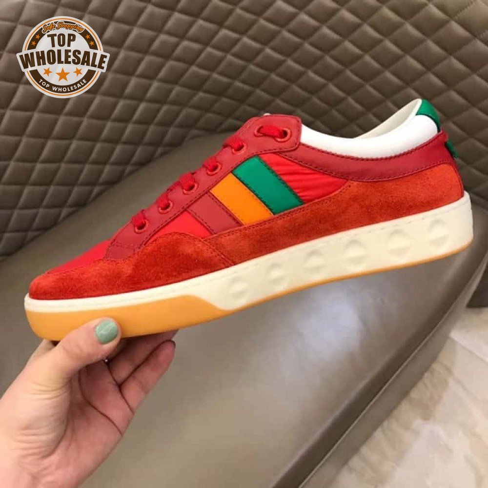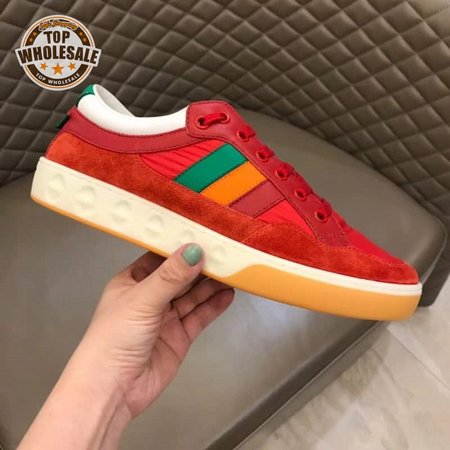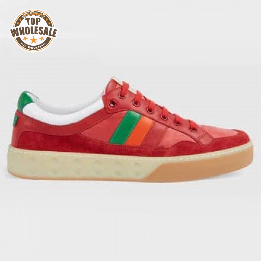 GUCCI MEN'S RED LEATHER AND NYLON SNEAKERS - GC62