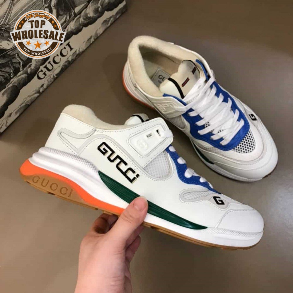 GUCCI G LINE SNEAKERS IN LEATHER AND MESH WITH EMBROIDERED LOGO - GC117