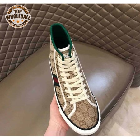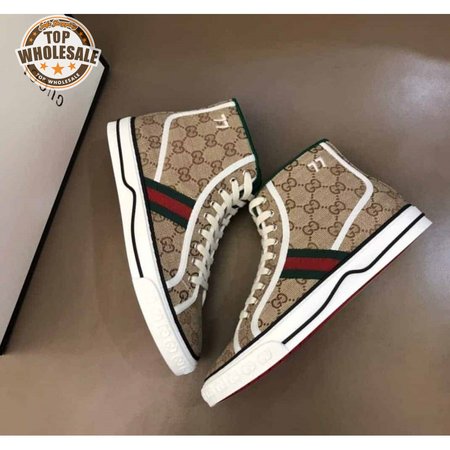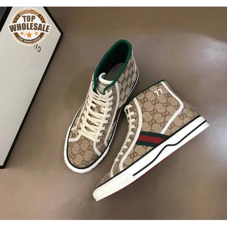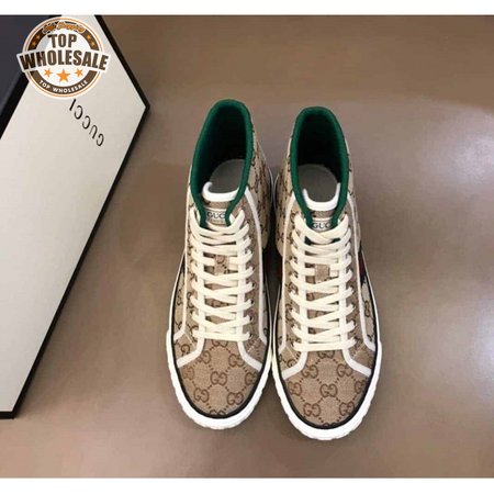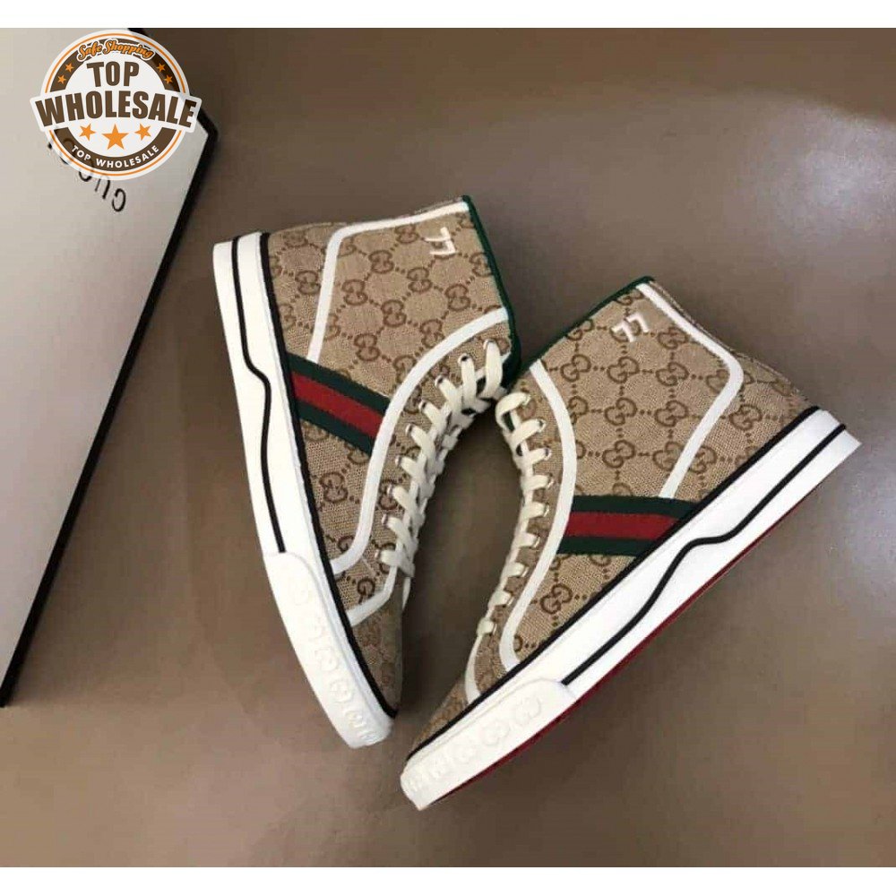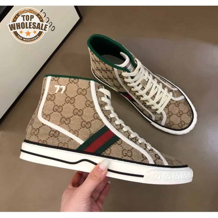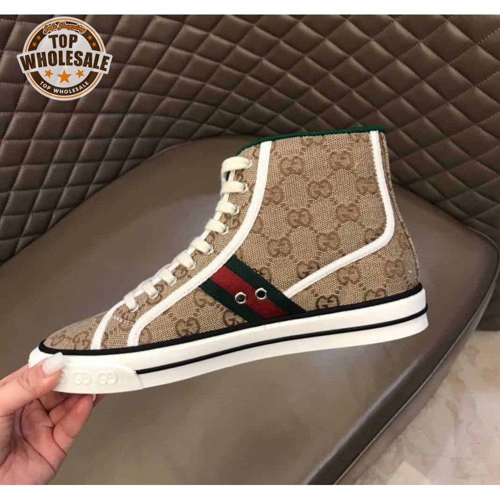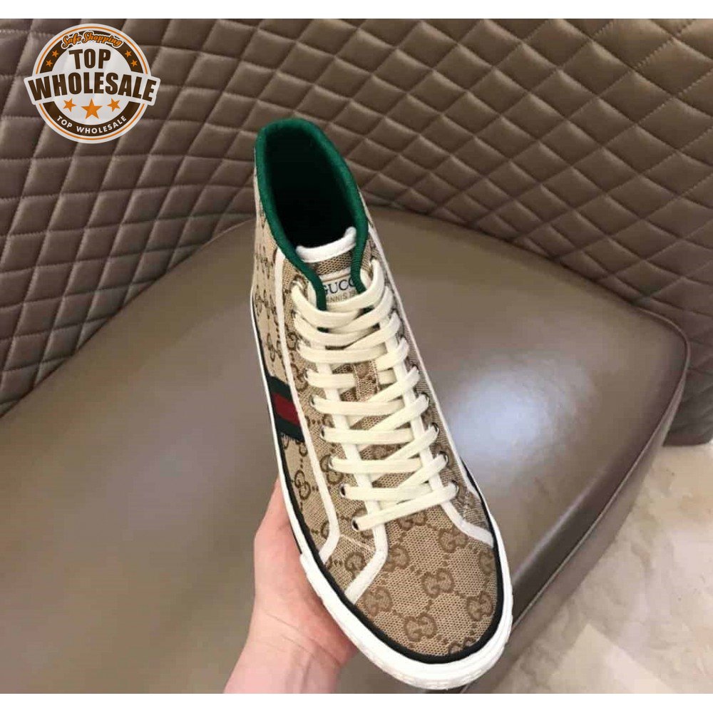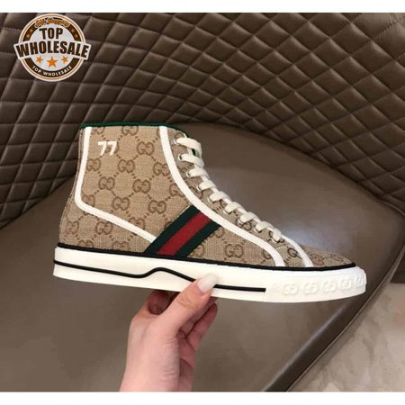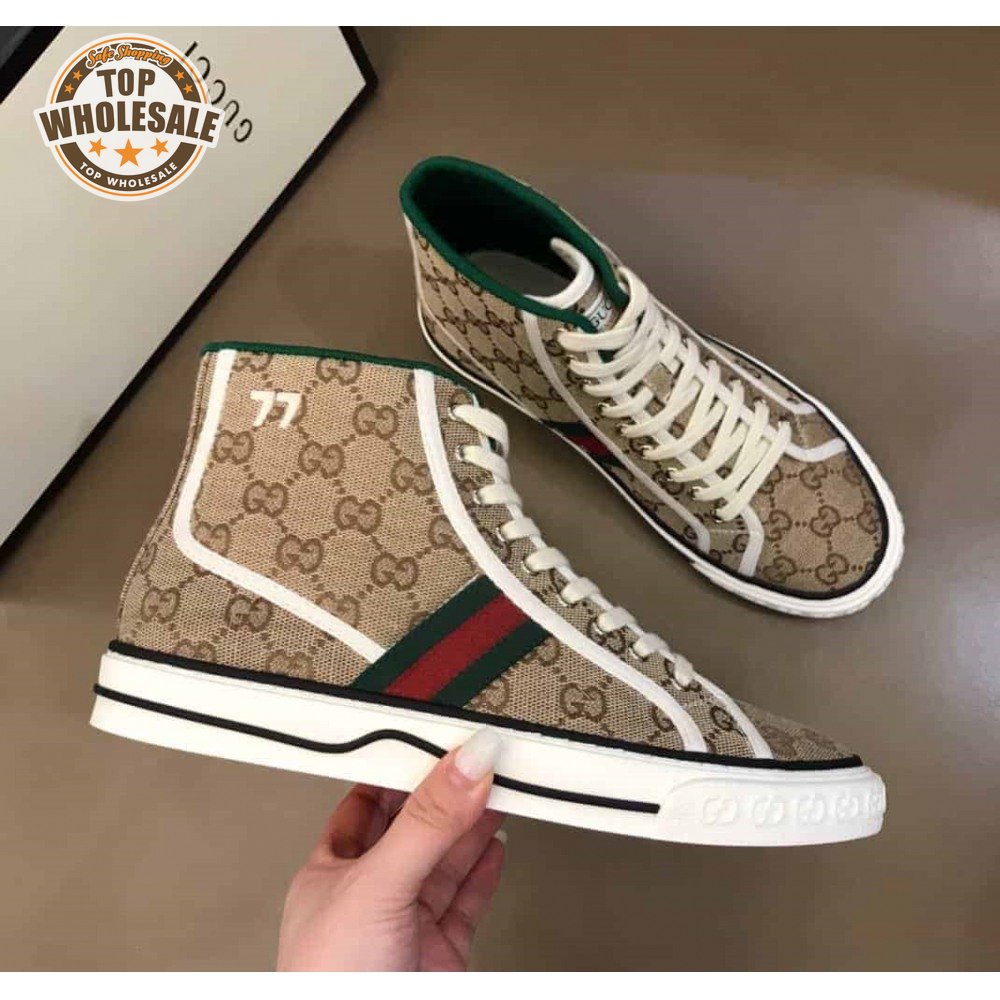 GUCCI TENNIS 1977 HIGH-TOP SNEAKERS IN BEIGE AND EBONY GG CANVAS - GC100