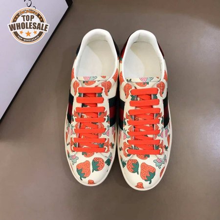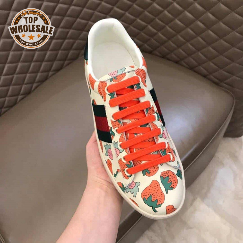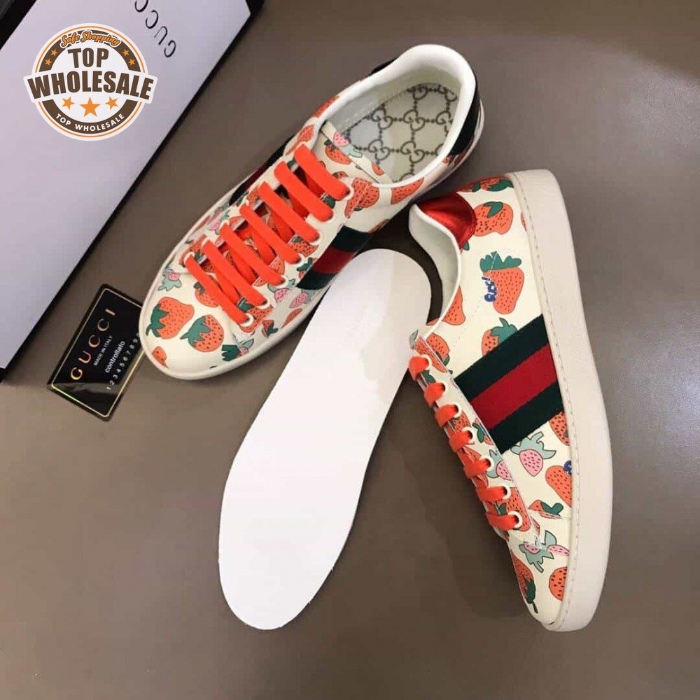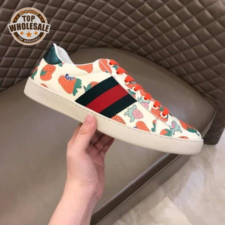 GUCCI ACE LEATHER SNEAKER WITH GUCCI STRAWBERRY PRINT - GC10