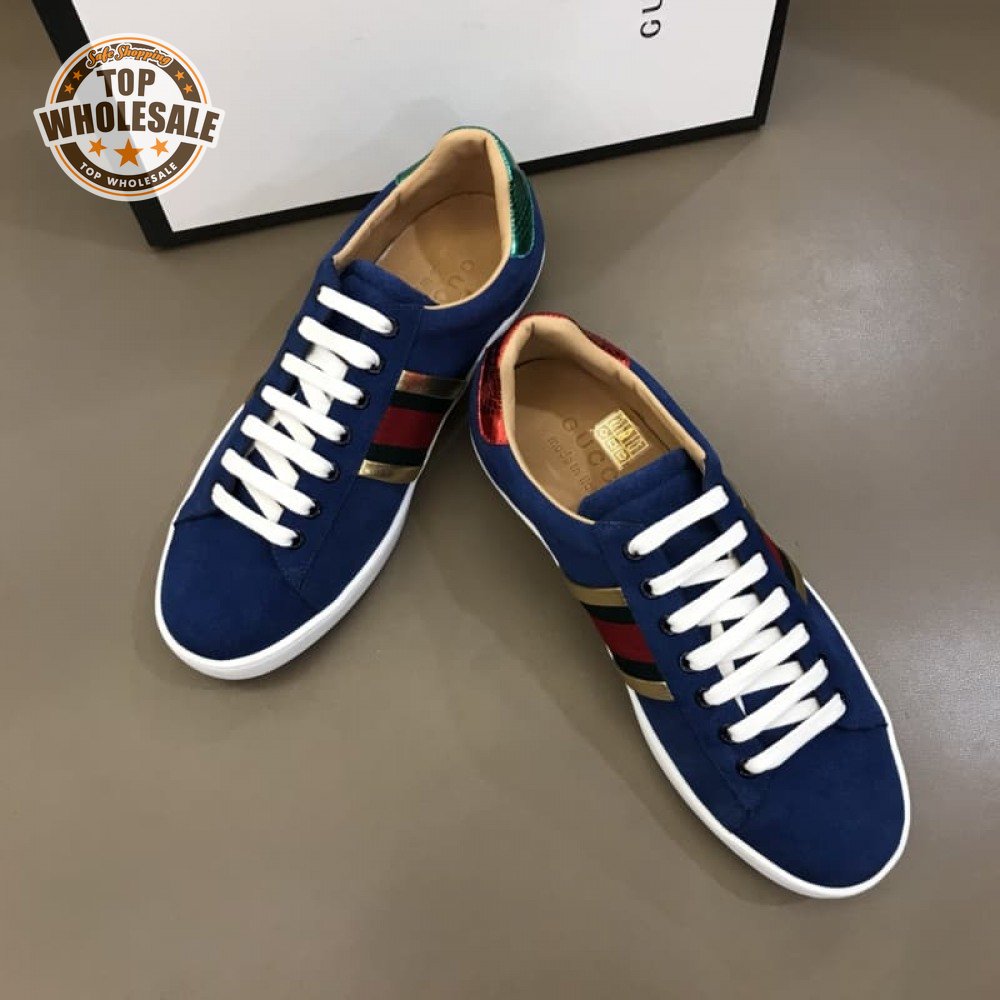 GUCCI ACE SNEAKER VELVET BLUE METALLIC STRIPE - GC40