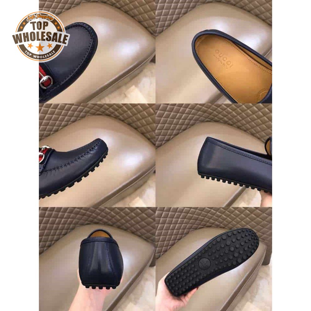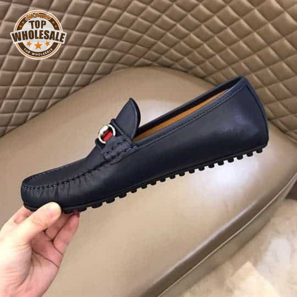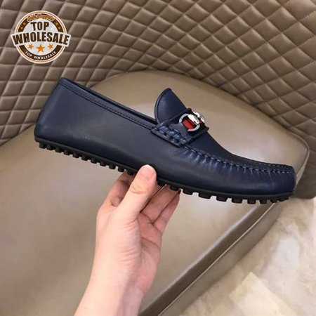 GUCCI LEATHER DRIVER WITH WEB NAVY - LDG006