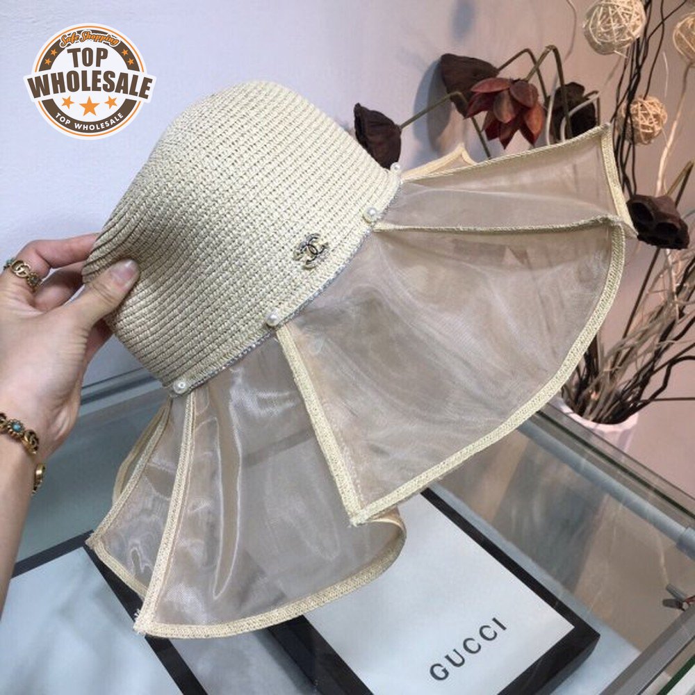 Wholesale CC Top 2020 Pleated lotus leaf stitching straw hat