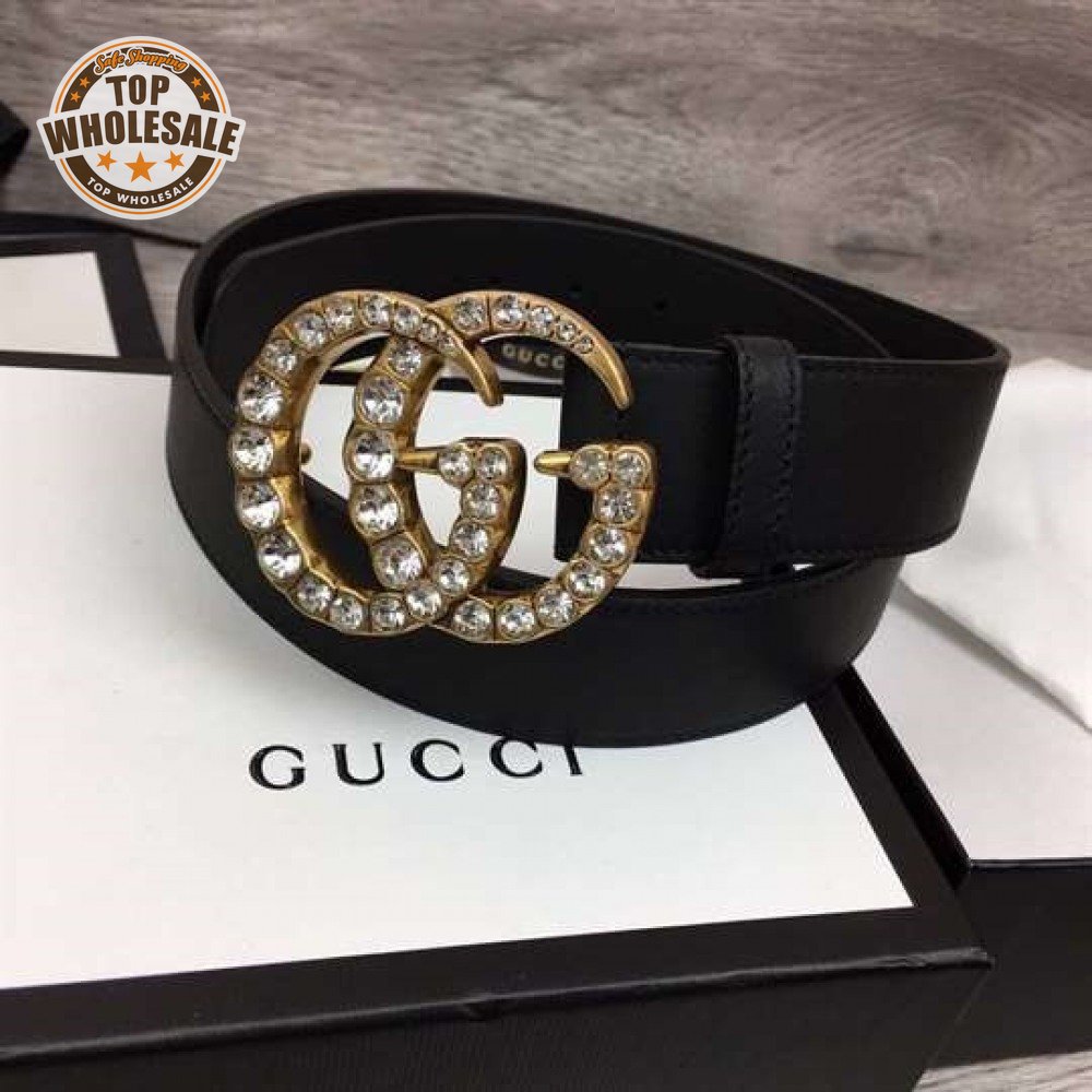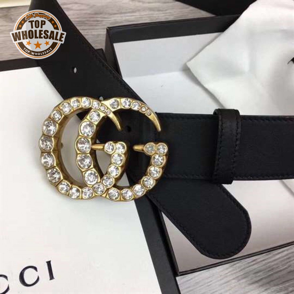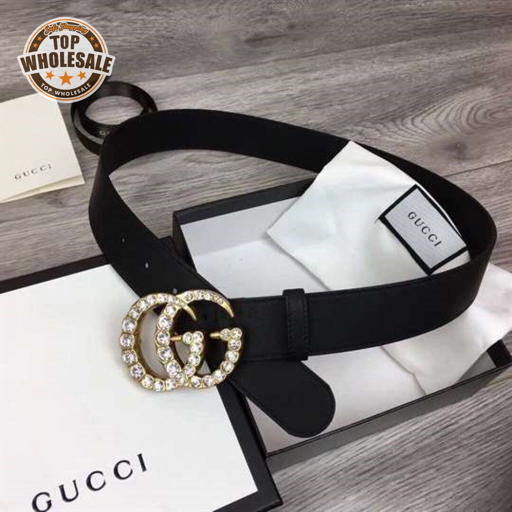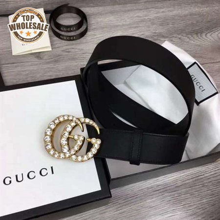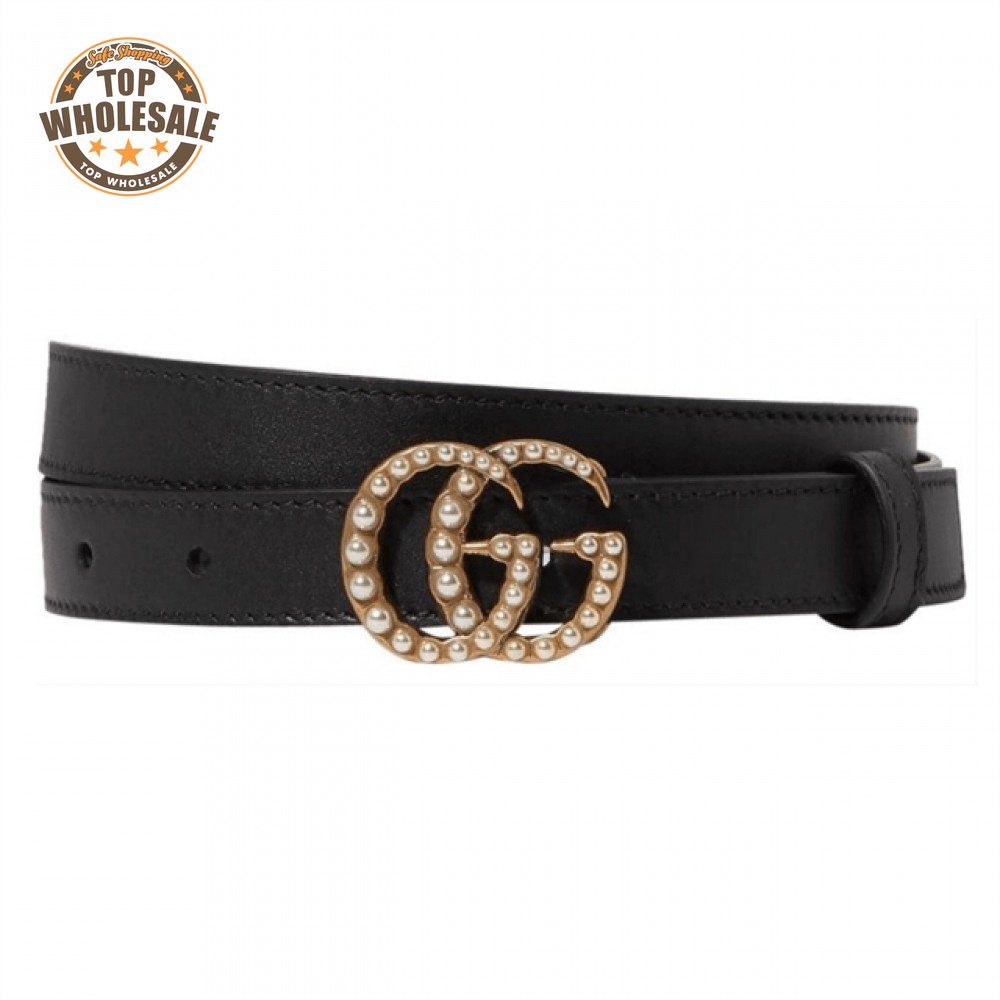 GUCCI BLACK FAUX PEARL-EMBELLISHED LEATHER BELT - B44