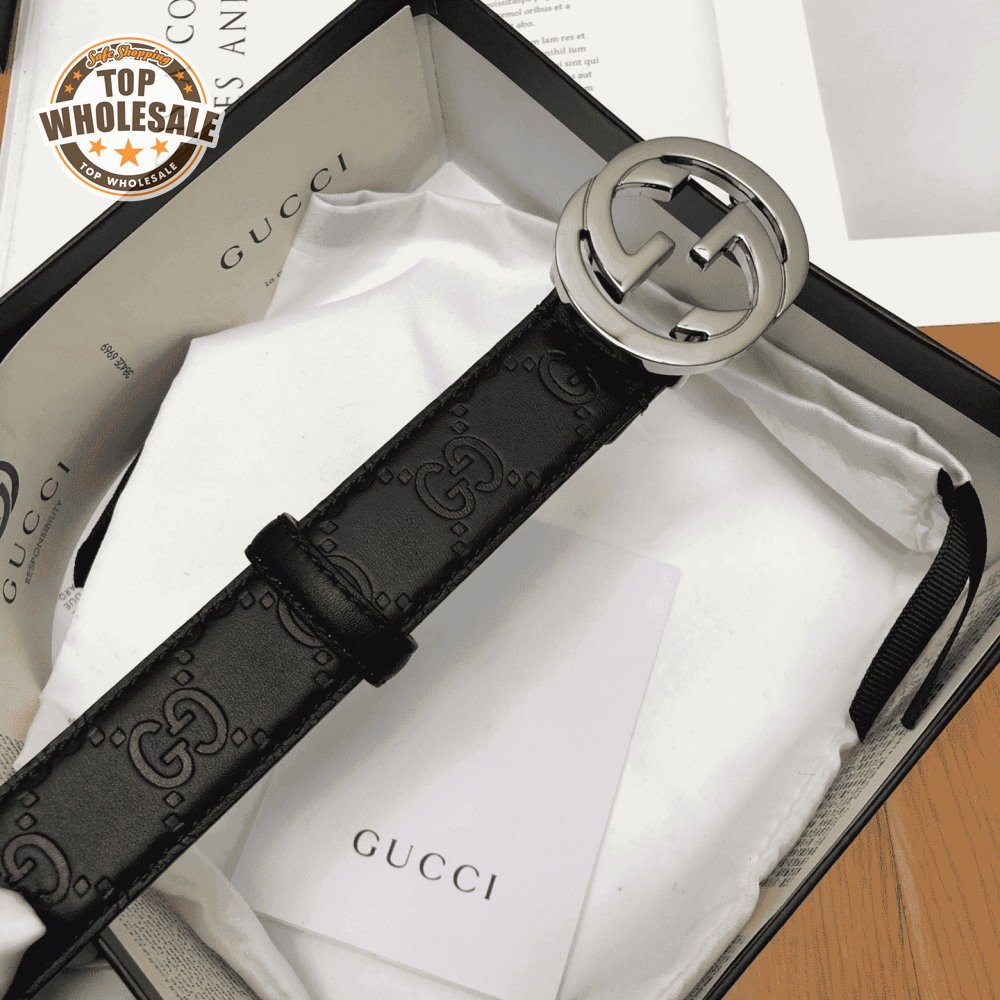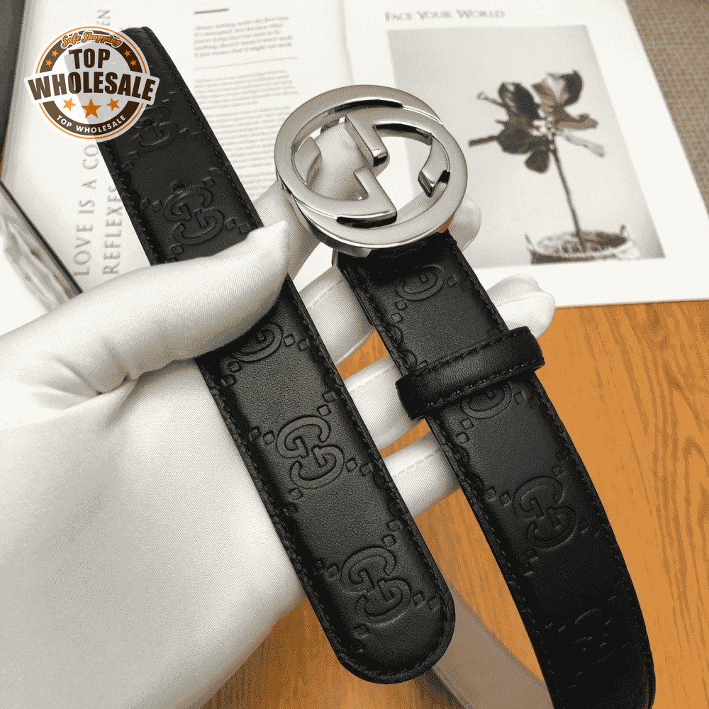 GUCCI INTERLOCKING-G LEATHER BELT - B7