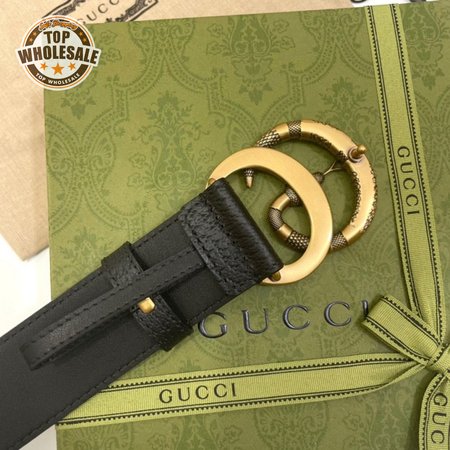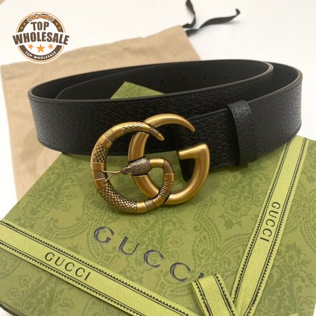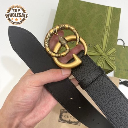 GUCCI LEATHER BELT WITH DOUBLE G BUCKLE WITH SNAKE