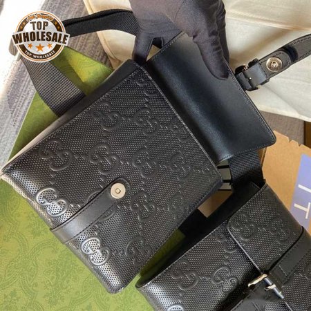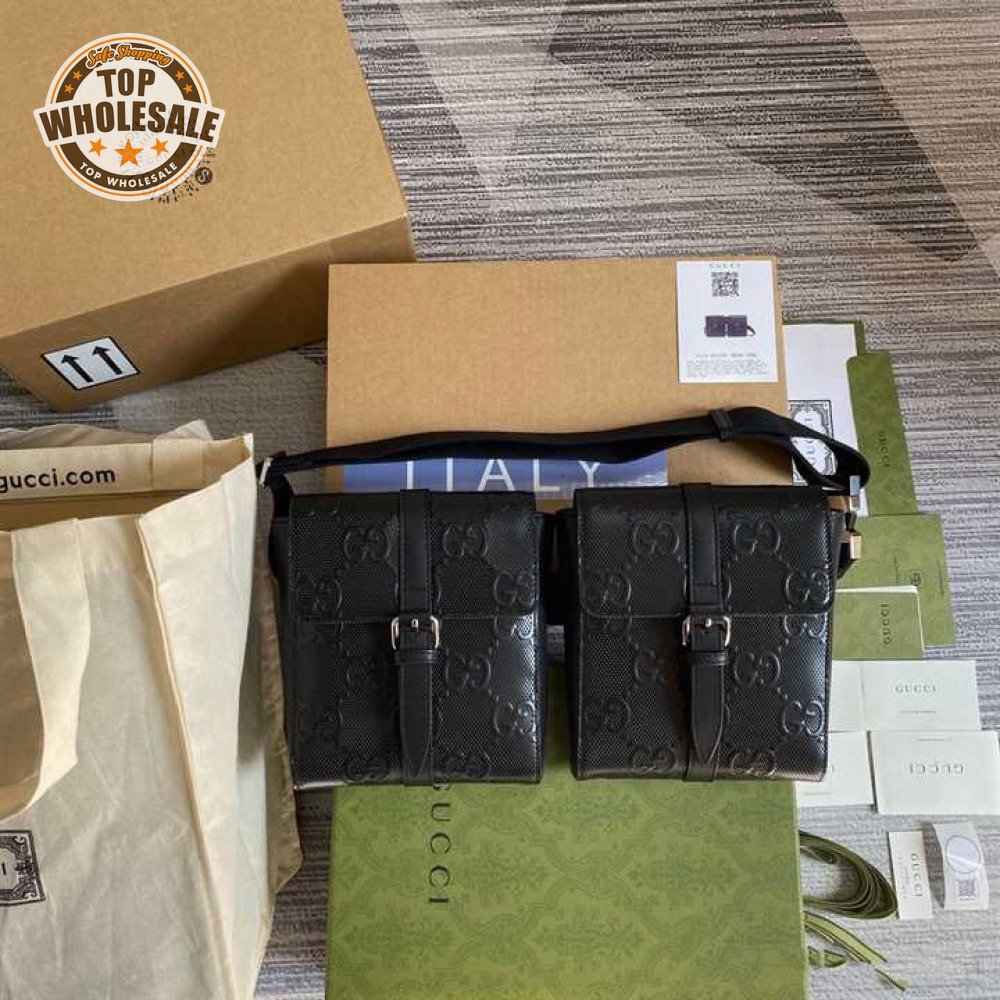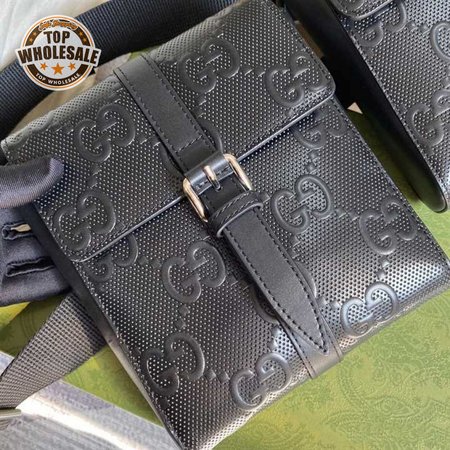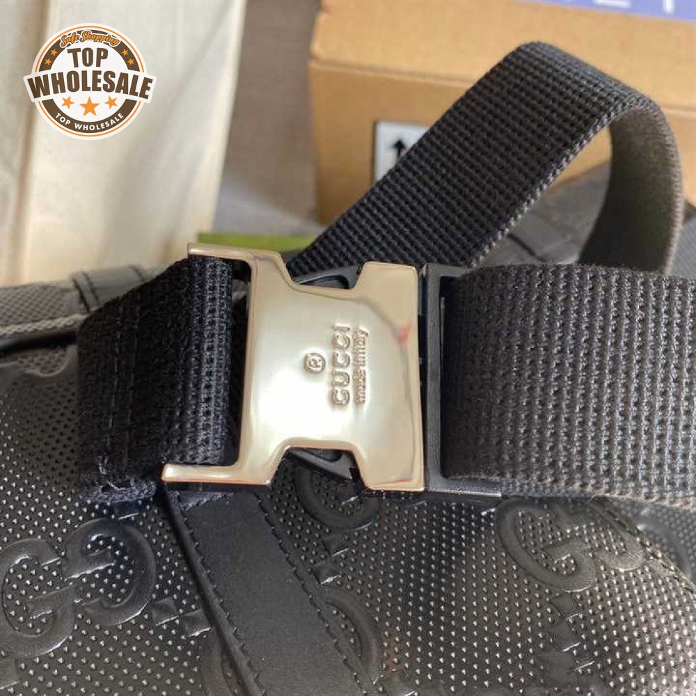GG EMBOSSED BELT BAG BLACK GG EMBOSSED LEATHER COTTON LINEN LINING - GBC16