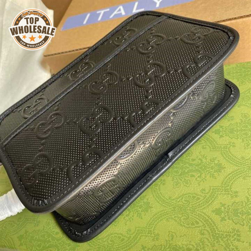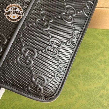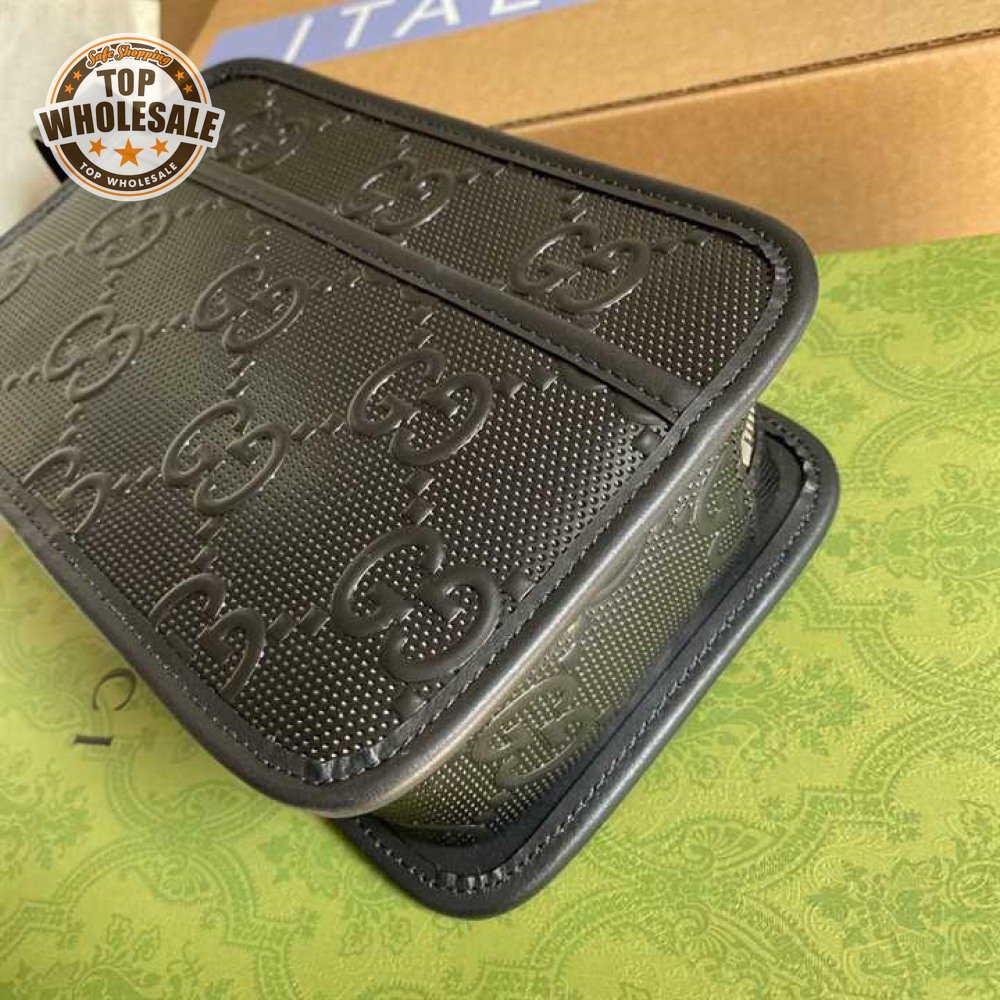 Gg Embossed Cosmetic Case Black Gg Embossed Leather Cotton Linen Lining GBB020